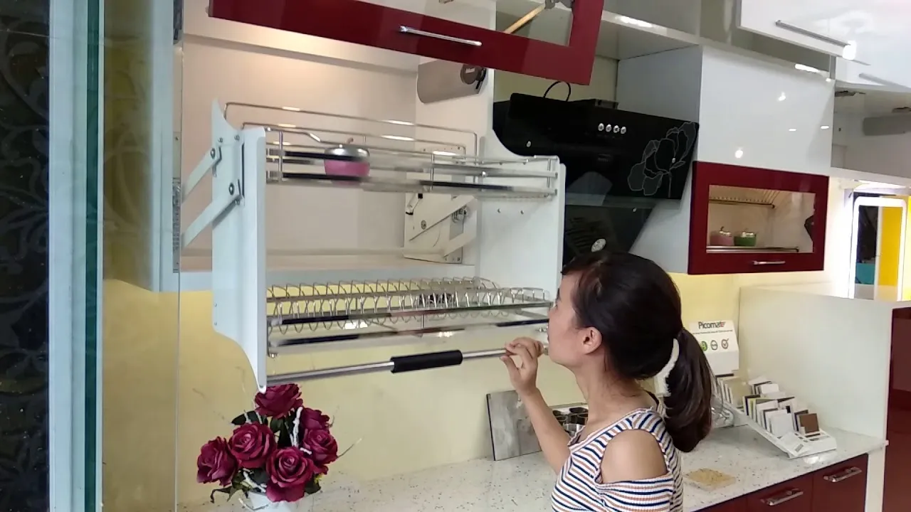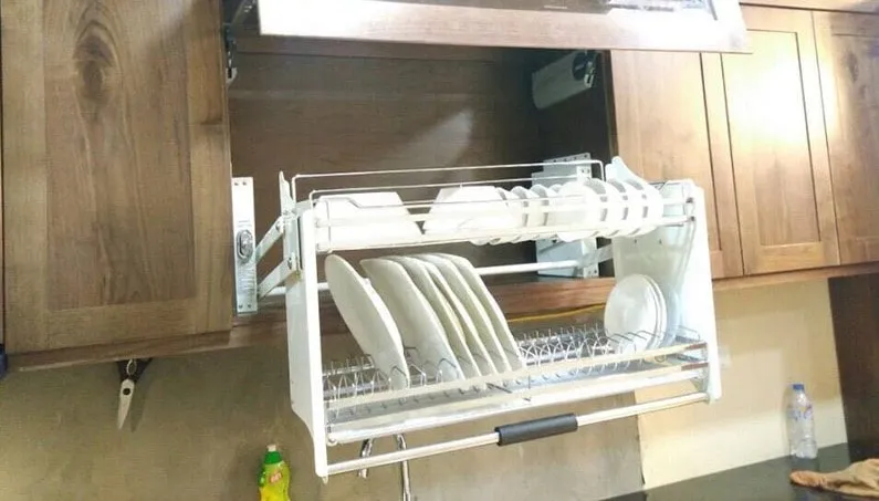 Giá bát nâng hạ có tính linh hoạt cao, dễ dàng kéo ra để sắp xếp bát đĩa